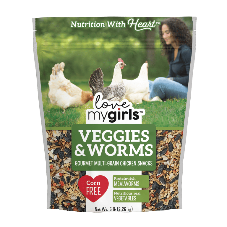 Tend to your flock with a delicious and nutritional snack. Love My Girls Veggies & Worms Chicken Treats are contain protein-rich mealworms that your feathered friends will love!Specifications