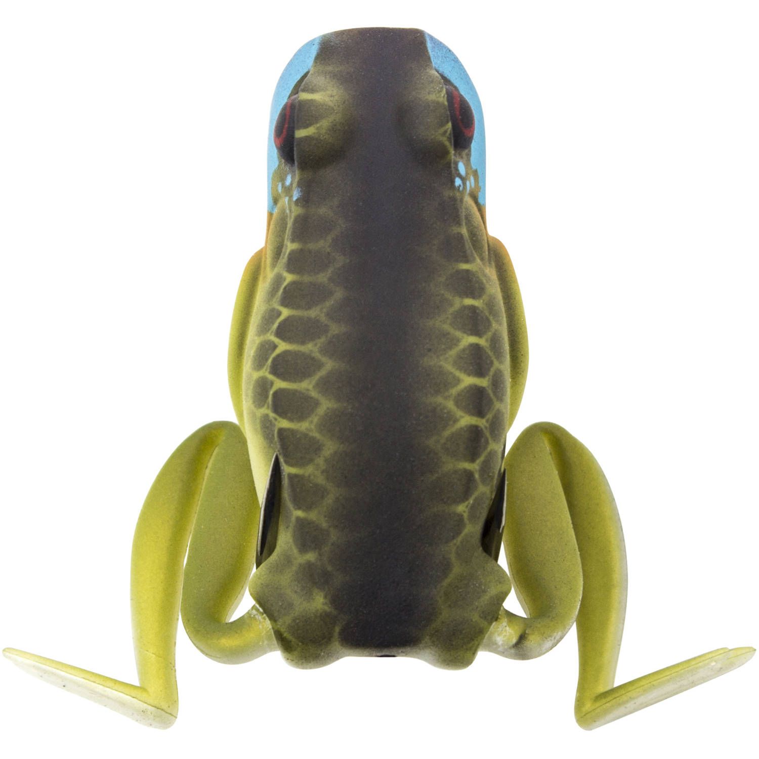 Creates a surface disturbance with its concave face that causes popping and spitting noises; Draws the attention of bass and pike; Sharp high-quality upturned hooks; Swimming legs give it a realistic frog appearance; Weedless design with a hollow body