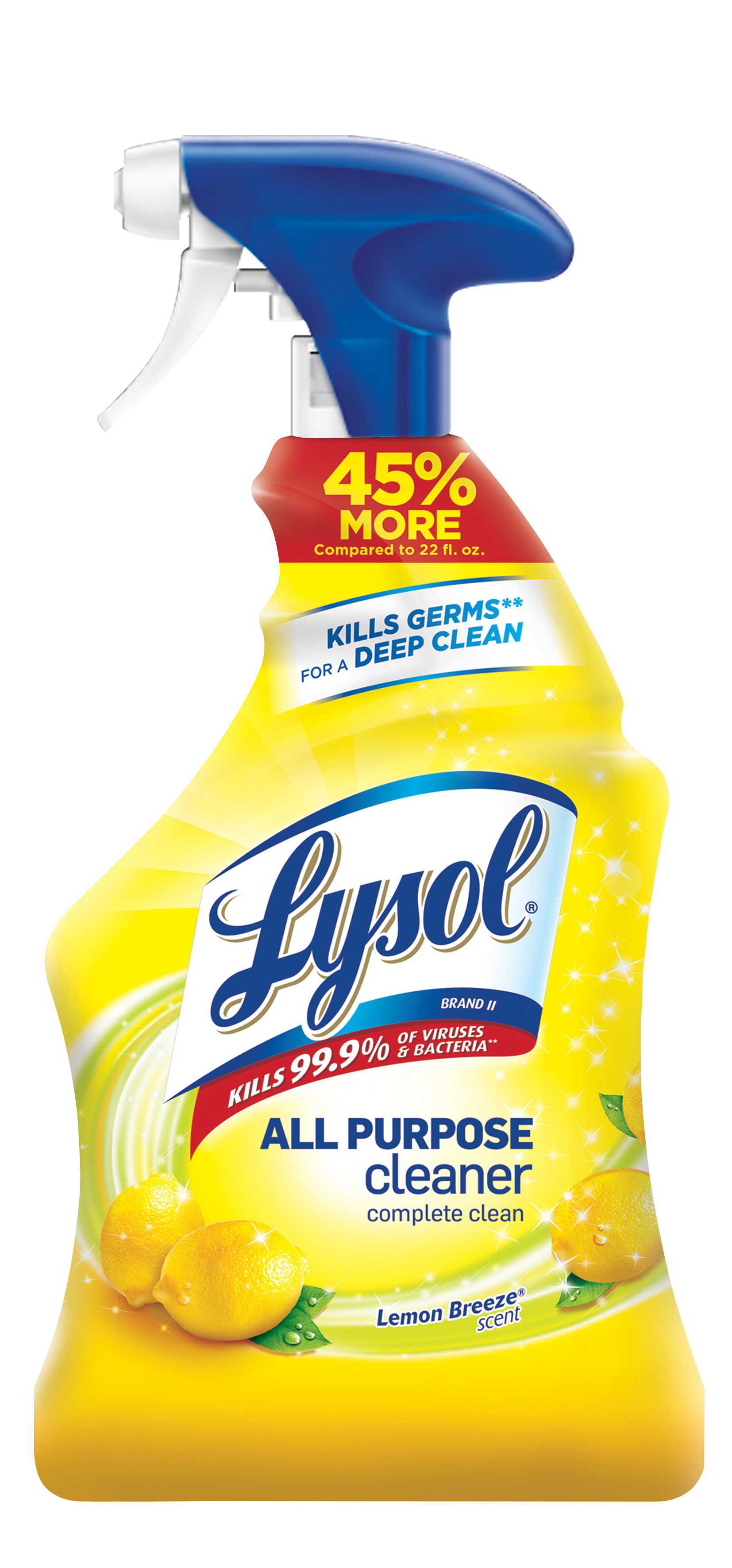 Lysol All-Purpose Cleaner eliminates viruses, bacteria, soap scum, and tough grease. From kitchens to bathrooms to common household areas, Lysol All Purpose Cleaner helps achieve fresh, healthy surfaces. Cutting through tough grease and soap scum, it kills 99.9% of germs to help provide peace of mind for busy families. Lysol All-Purpose Cleaner provides long lasting freshness and can be used on hard, non-porous surfaces in the kitchen, bathroom and other areas of the home.Specifications
