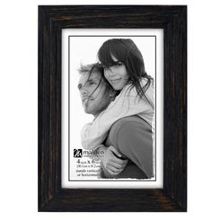 Showcase your rustic style with this rough black linear picture frame from Malden Int Designs. With it’s simple and elegant design, this stunning frame is the perfect way to display your favorite photos or art prints. Frame is constructed of sturdy MDF wood with a smooth finish. This frame holds a 4 x 6 inch photo in a 3.5 x 5.5 inch display open- ing. An easel back allows for horizontal or vertical on any tabletop or shelf. Hardware on the back makes it easy to hang on a wall. A durable glass front will protect and show- case your precious memories for years to come. Simple to load with high quality turn tabs and a sturdy back panel. This understated design makes it perfect for fine art or for your favorite memories. This classic frame makes a great gift for birthdays, holidays and more.Specifications