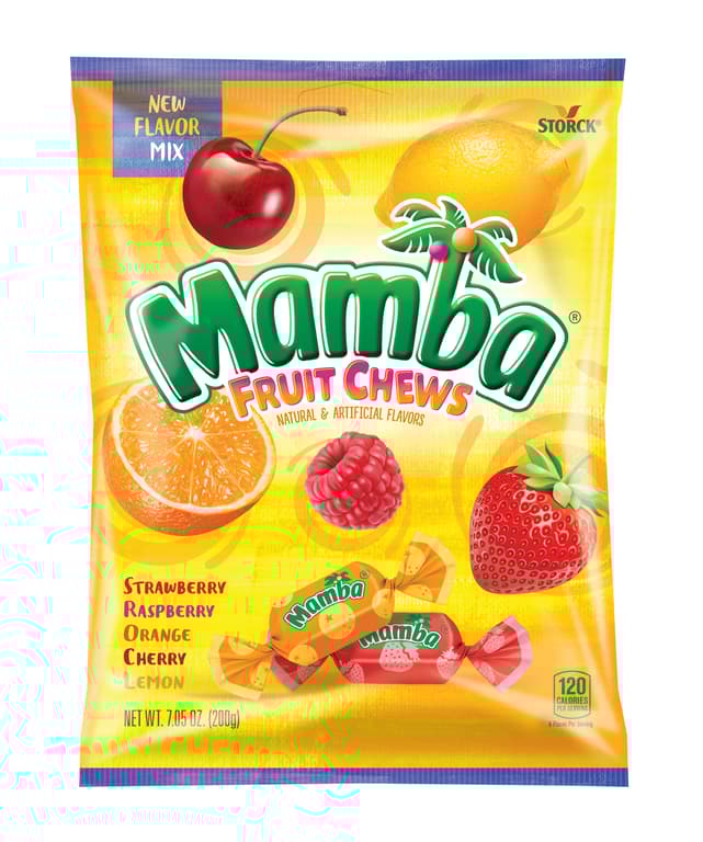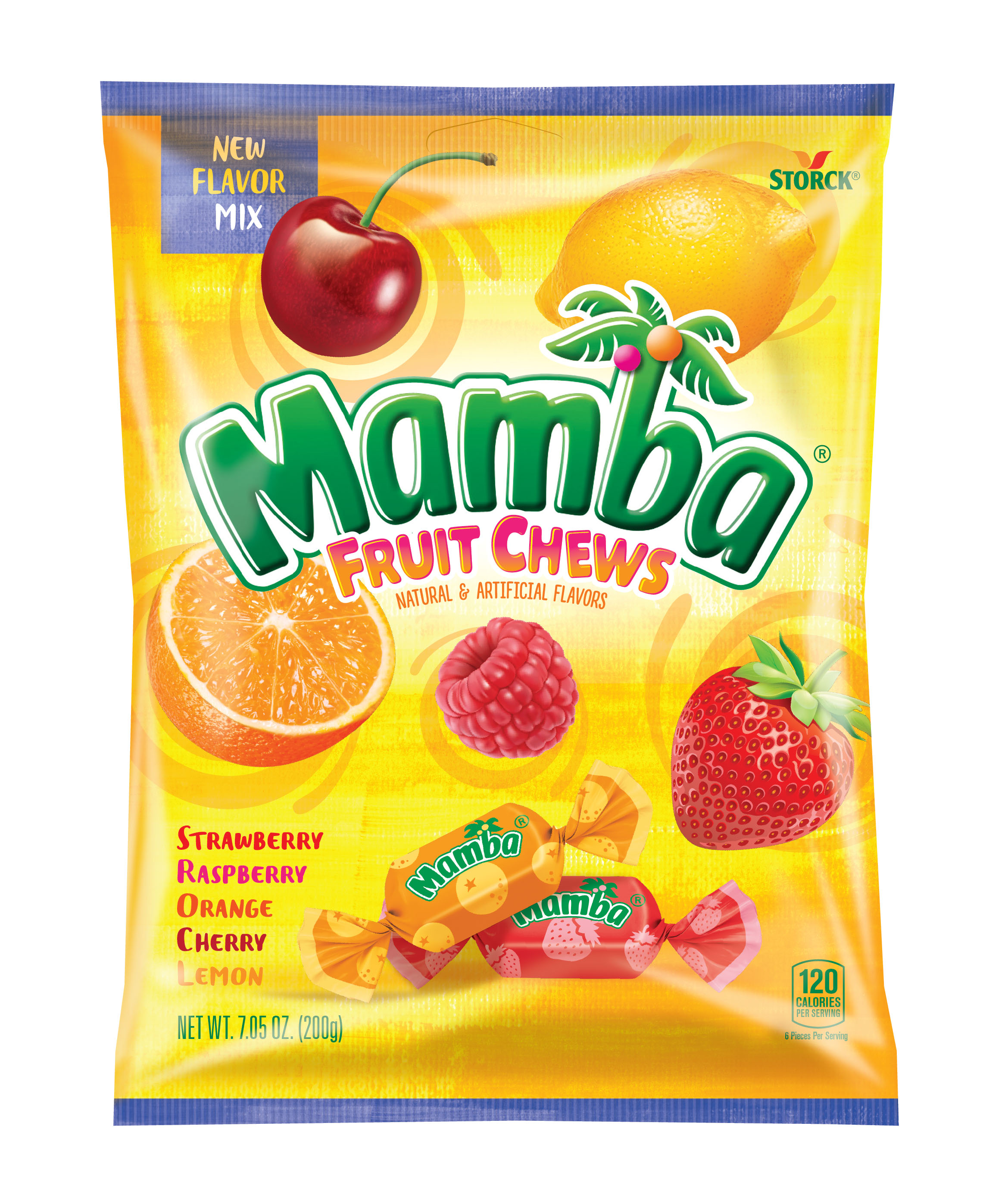 Mamba Fruit Chews with assorted fruit flavors of Lemon, Raspberry, Orange & StrawberrySpecifications