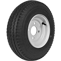 best replacement wheel for utility RV and boat trailers; Bias ply tire; Bolt circle pattern: 4 holes on 4 in. circle; Exceeds dot requirements for highway use; fading and corrosion for a great appearance and longer life; load range B; Max load: 590 lbs. 60 PSI.; Powder-coat finish resists chipping scratching