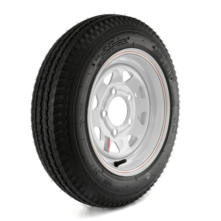 For utility RV and boat trailers. Bias ply tire. Custom spoke white wheel. 1120 lb. capacity at 60 psi. Meets DOT requirements.Specifications