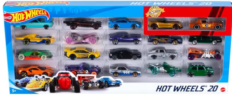 Each vehicle features the authentic designs and awesome details that have been part of the Hot Wheels tradition since 1968.; Hit the gas on a new Hot Wheels collection or enhance an existing one with this 20-pack of modern and vintage 1:64 scale vehicles that kids and collectors will love.; The variety pack of 20 toy vehicles makes a great gift for collectors, kids and car aficionados.