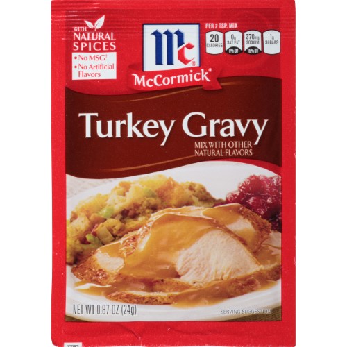 Delicious homemade gravy in 5 minutes. Made with Natural Spices and no artificial flavors, this meaty, lump-free gravy deserves its own holiday. Serve over mashed potatoes, turkey, stuffing and more.Specifications