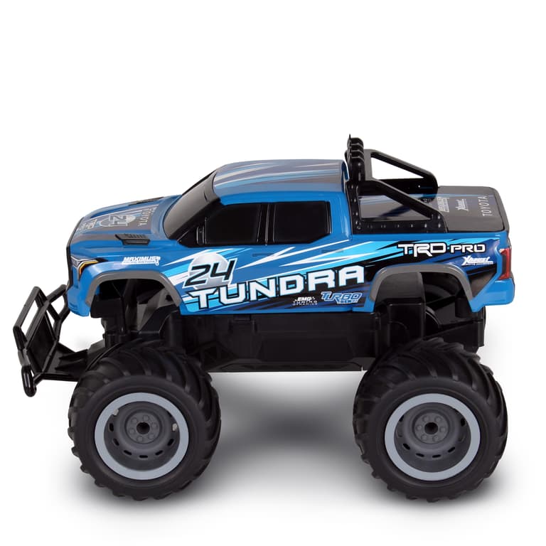The Toyota Tundra TRD is the definition of performance and style. This officially licensed powerhouse is not just a vehicle; it's a force of nature, combining the iconic design of the Toyota Tundra TRD with cutting-edge RC technology and power. Get ready to redefine the way you conquer terrain! This high performance monster truck features one of the fastest brushless two speed motors NKOK has ever produced! It has so much torque it can perform wheelies and donuts with ease. Hit that turbo button for another dimension of speed. It is completely ready to run! Includes 2 x AA batteries, a rechargeable 7.4v Li-ion battery, and a charger. Operates at 2.4 GHz which allows 16 players to race at the same time, with a range of up to 150 feet!Specifications