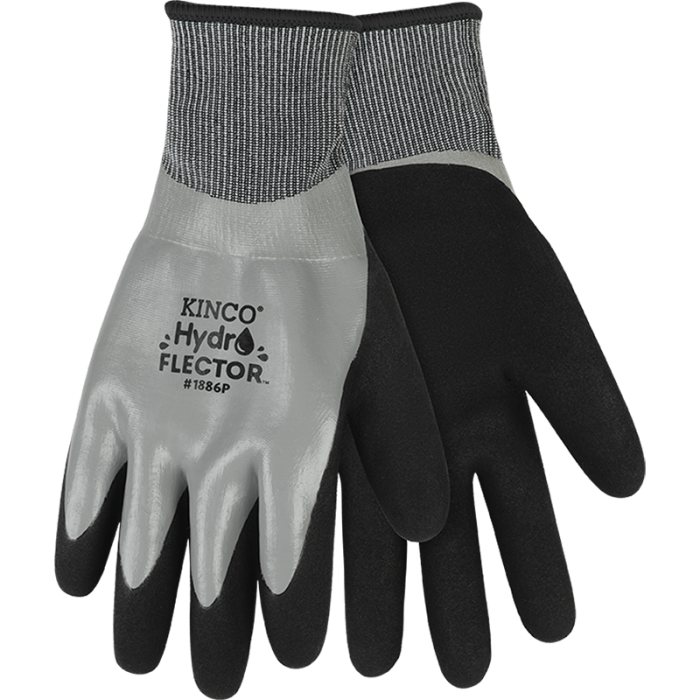 extured black sandy nitrile coated palm provides optimal grip control, & offers dependable puncture & tear resistance.Double-layered knit shell using gray heavyweight 15-gauge 100% polyester outer shell & soft black heavy thermal 7-gauge brushed-loop 100% acrylic inner liner locks in warmth, repels the cold, & wicks away moisture with seamless, form-fitting comfort.Specifications