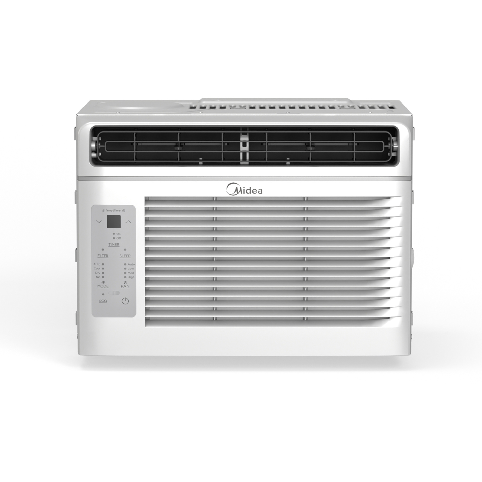 The Midea 6,000 BTU Window-Mounted Room Air Conditioner with Remote Control is perfect for cooling a room up to 250 square feet. It quickly cools the room on hot days and its quiet operation keeps you cool without keeping you awake. This window unit offers 3-in-1 comfort: it cools, dehumidifies, and ventilates a room efficiently. There are four different settings: two different fan speeds and two cooling modes, including a sleep mode. The remote control thermostat allows you to precisely and conveniently control the temperature and fan speed. The comfort control 4-way air direction allows you to direct the air where you want it.This air conditioner is Energy Star Certified. The Midea 6,000 BTU Room Window Air Conditioner, Remote Control, Energy Star also includes a timer so you can set to your desired cooling time period and go about your day. The 1 Year Limited Warranty will guarantee customer satisfaction, while the quick and easy installation will get you cool in no time. Try a Midea Air Conditioner today!Specifications