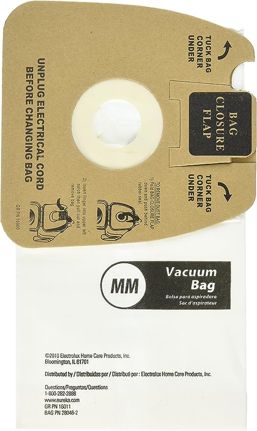 The Eureka Type MM Mighty Mite Canister Vacuum Bags, are made In The USA! This 3pk, fits Style MM 60295, 60296, 60297. The 2 ply micro filter bags are made of a thick double-pleated layer. Not easy to bust or leak when vacuuming. Keeps the air quality in your house good removing dirt, dust, particals and hair.Specifications