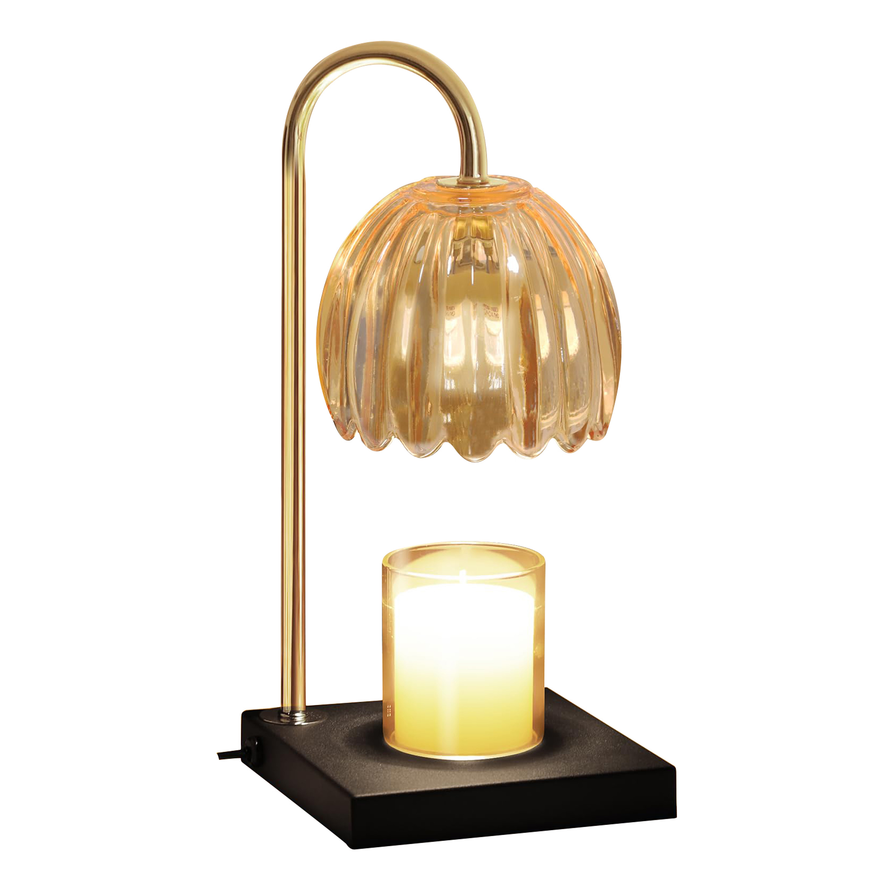 Experience the warmth and fragrance of your favorite candles with the Home Decor candle warmer; Our candle warmer releases fragrance into your room safely , with out the need for open flames, smoke or soot; 50 watt halogen bulb included has a color warmth of 2800k with dimmer switch on the cord; Shade is made of crystal, base is made of wood, Metal tube wire houses the electrical cord. 110 120V, 35 50W; Lamp shade measures 4.65X5.0 inches. Item overall height 13.5nches. Suitable for jar candle sizes up to 4inch diameter and 5 inches tall.Specifications