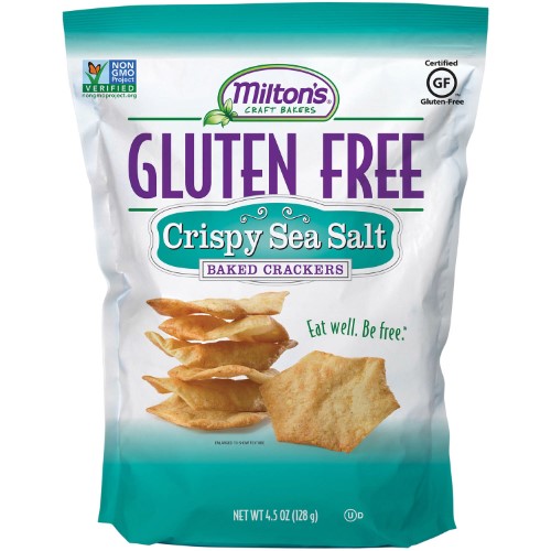Made with a flavorful combination of five gluten free grains, and baked to crispy perfection with just the right touch of sea salt, Milton’s Gluten Free Crispy Sea Salt Baked Crackers are the perfect accompaniment to dips, salsas, soups and even sprinkled on top of your favorite salad. These are sure to be an instant crowd pleaser.Specifications