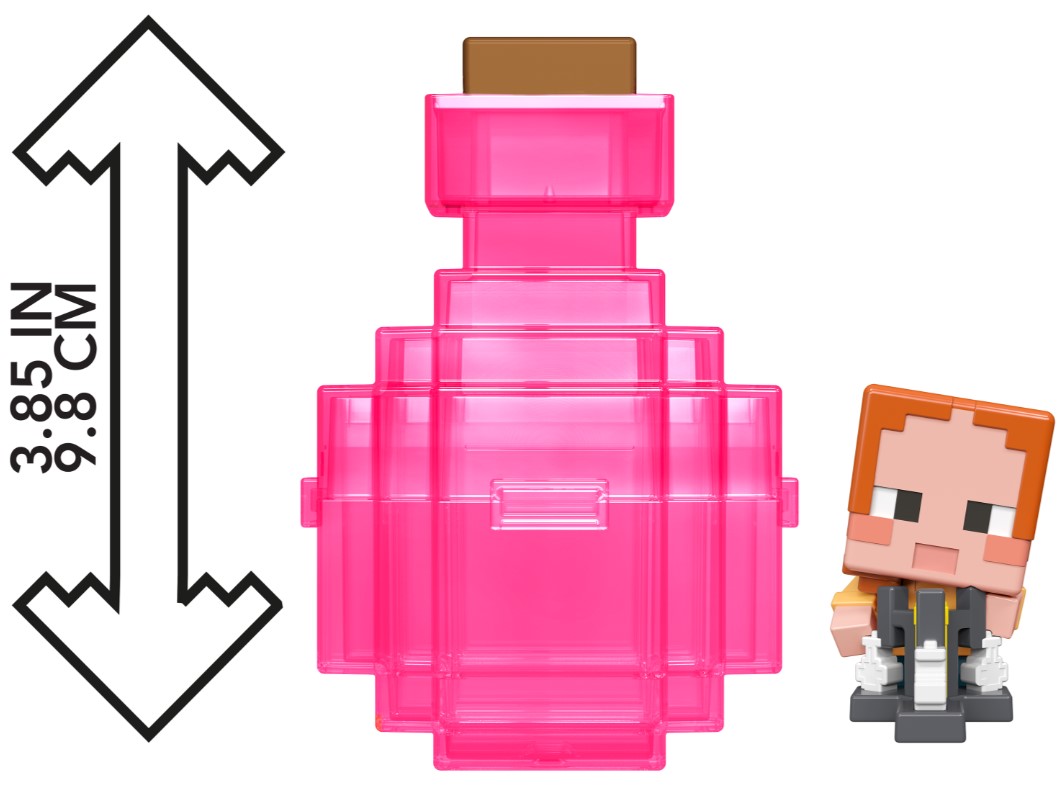 Something wild is brewing with the Minecraft Mini Mode Potion Brewing collection! Open each reusable Minecraft potion-themed container to find a mini figure inside with a packet of Slimy Brew Potion Particles. Pour the Potion Particles and water (not included) into the container and shake to mix up Slimy Brew. Then open to discover the slimy figure has transformed with a new look via Color Reveal! Fans will want them all! Each sold separately, subject to availability. Colors and decorations may vary.Specifications