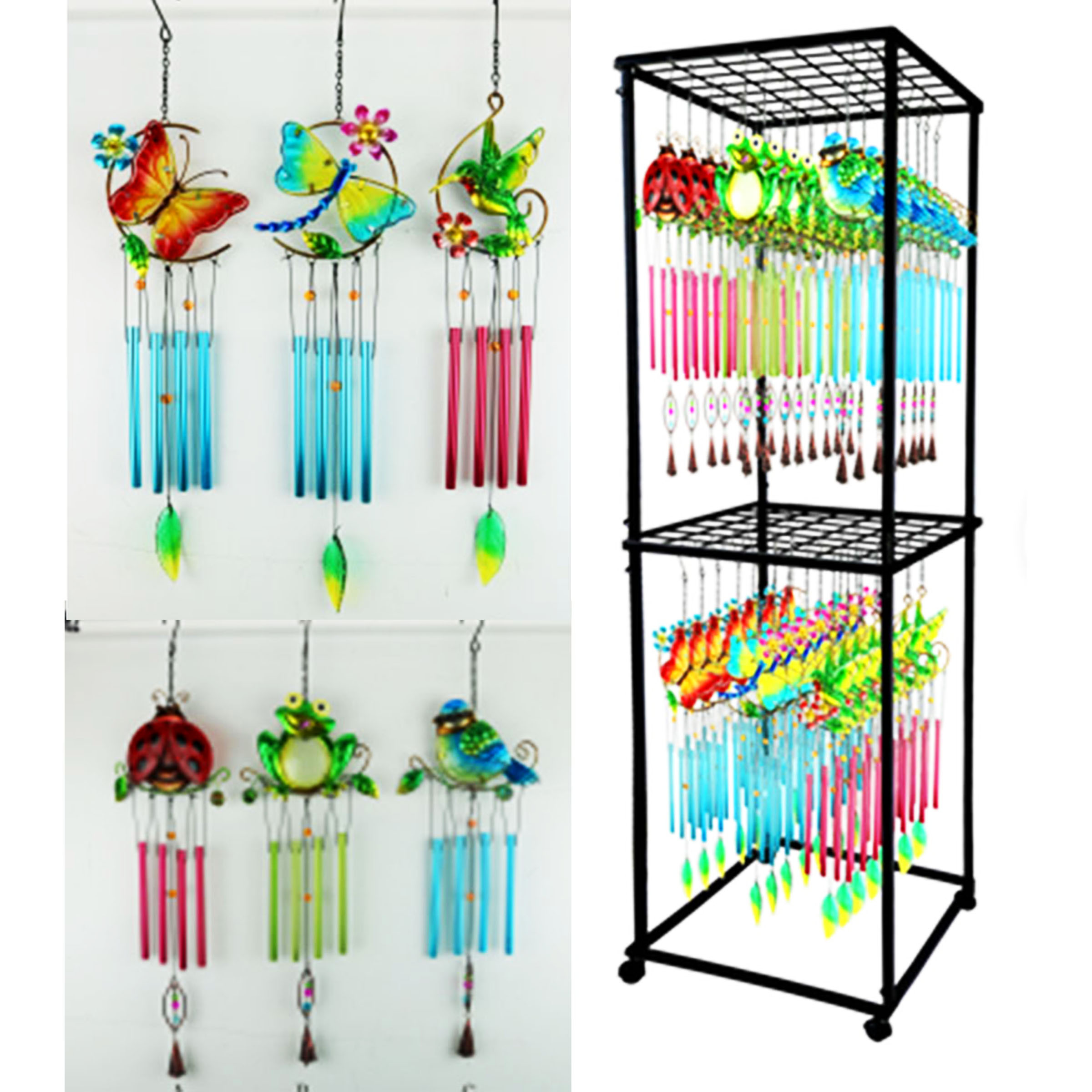 Finished in vibrant hand-painted or antique-style tones, the chimes are accented with glass elements and decorative beads that catch the light and enhance their visual appeal. The compact 22-inch size makes them ideal for smaller spaces like balconies, windowsills, desks, patios, or shelf displays, while still delivering soft, pleasant tones when moved by breeze or touch. Built for both decorative and functional use, these wind chimes add movement, sound, and artistic detail to any setting. Perfect for a unique gift, a charming accent for their garden, or a small decorative piece for the home, this set delivers variety, style, and value with six distinct designs to choose from.Specifications