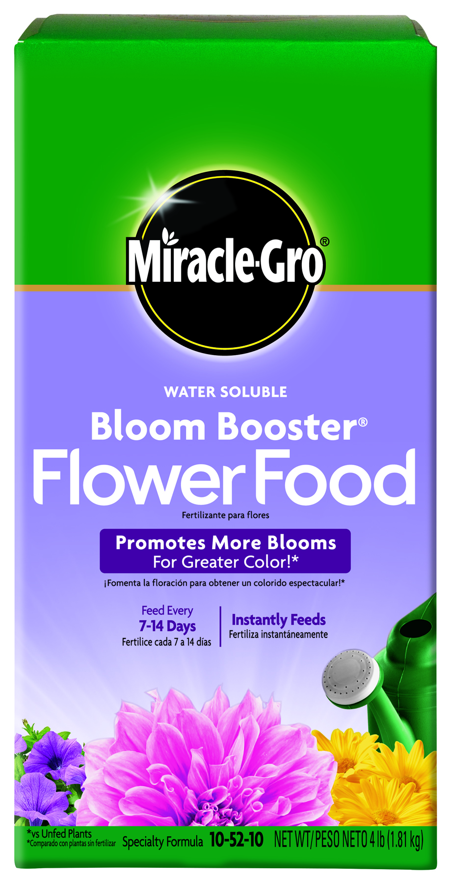 Miracle Gro Water Soluble Bloom Booster Flower Food Promotes Big Plants And Beautiful Blooms. Double Feeding Action Feeds Through Both The Roots And The Leaves. Safe For Plants. Guaranteed Not To Burn When Used As Directed. Starts To Work InstantlySpecifications