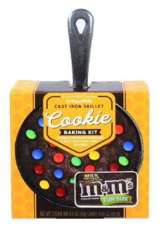 WHIP UP A SERVING OF HOMEMADE HAPPINESS WITH A SIMPLE AND DELICIOUS CAST IRON SKILLET COOKIE BAKING KIT. GOOEY, WARM, CHEWY AND SWEET IT'S ALL THE THINGS YOU LOVE ABOUT CLASSIC CHOCOLATE COOKIES BUT WITH A FUN NEW TWIST! THE LARGE COOKIE IS BAKED DIRECTLY IN THE CAST IRON SKILLET, WHICH CAN THEN BE USED AGAIN AND AGAIN TO CREATE OTHER MOUTHWATERING DESSERTS. COLORFUL MILK CHOCOLATE CANDIES MAKE THE PERFECT FINISHING TOUCH ON THIS SHAREABLE TREAT THAT'S FUN FOR EVERYONE.Specifications