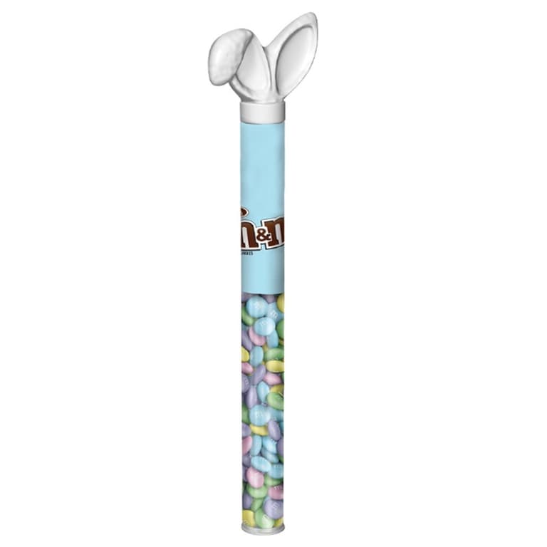 Make some-bunny happy this Easter with a Bunny cane filled with a festive pastel assortment of M&M'S Easter candy. Crafted with real milk chocolate and covered in colorful candy shells, M&M'S chocolate candy adds a delightful touch to your Easter celebrations.This cane makes pouring into candy dishes and Easter eggs a breeze, delighting party guests. Seal and store in the pantry until you're ready to make, bake, and decorate your Easter desserts. Don't miss out on spreading joy with these delicious goodies that are sure to brighten everyone's holiday celebrations.Hop to it and add to your cart for a festive and delicious Easter treat!Specifications
