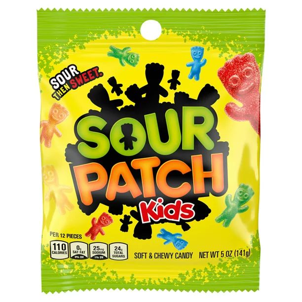 Assorted fruit flavors offer a variety of options that are SOUR. SWEET. GONE. Soft and chewy candies have the traditional SOUR PATCH KIDS shape for a hint of mischief. Bring this SOUR THEN SWEET candy to parties, holidays, movies and more!Specifications