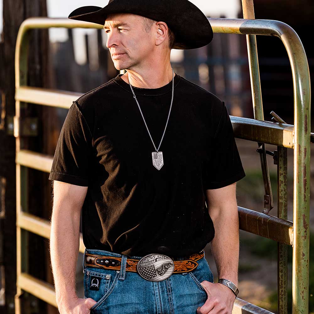 Gunmetal and bright silver tone; Gunmetal over a brass base; Mens Bracelets; Montana Armor to prevent tarnish; Tattered American flag design