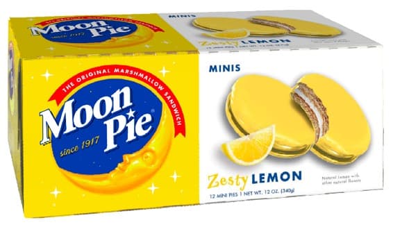 MoonPie Minis are made with a marshmallow sandwiched between two crisp graham crackers and then covered with a delicious coating of lemon to create the ultimate marshmallow pie. MoonPie Minis box contain 12 individually wrapped MoonPie Mini sandwiches at just 110 calories, MoonPie Minis can be enjoyed as a snack, packed as a lunch time dessert, or even warmed up for an extra special treat. Better than a cookie or basic snack foods, MoonPie has out of this world taste for kids and adults. Every chocolate covered MoonPie Dessert is baked from scratch at the Chattanooga bakery using natural ingredients including using real sugar and no artificial flavors or artificial colors. Each package is dated to ensure fresh baked taste and quality.The original marshmallow sandwich since 1917, moonpies have been proudly baked at the Chattanooga bakery for over 100 years. A Kentucky coal Miner asked for a tasty treat as big as the moon, and our Bakery has been satisfying hungry appetites ever since.Specifications