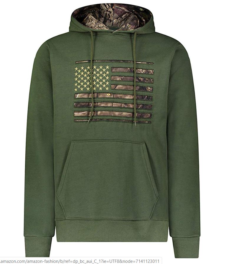 MENS SWEATSHIRT WITH A MOSSY OAK CAMO PATTERNED FLAG INSET IS A GREAT AMERICAN PRIDE ITEM TO KEEP YOU WARM ON THOSE COLD DAYS. WITH ATTACHED HOOD TO KEEP THE WIND OFF YOUR NECK AND HEAD. ALSO GREAT FOR ANY WEATHER AND CASUAL WEARSpecifications