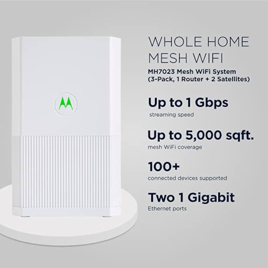 Delivers powerful AC2200 WiFi speed for uninterrupted streaming, gaming, and video conferencing. Features two 1 Gigabit Ethernet ports for fast wired connections. Provides robust WiFi coverage up to 5,500 sqft. Designed for the smart home with connection management of over 100 devices. Easily set up and manage your WiFi with the motosync app. Don’t pay more for Bedtime schedules, Screen Time Limits, Safe Search, and Device monitoring. Keep your network and data safe with advanced security and privacy. Protection against malware, intrusive devices, AP spoofing, and lateral attacks included.Specifications