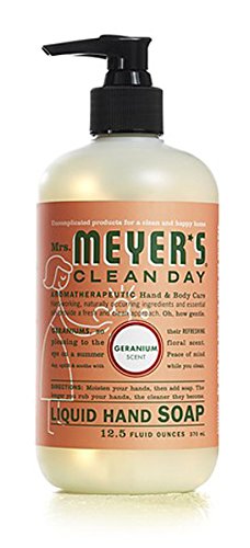Mrs. Meyer's Clean Day Geranium hand soap contains a special recipe of plant-derived cleaning ingredients, aloe vera gel, olive oil, essential oils and other thoughtfully chosen ingredients to create a hard working, non-drying, yet softening cleaner for busy hands. Hands have never had it so good. Made without parabens.Specifications