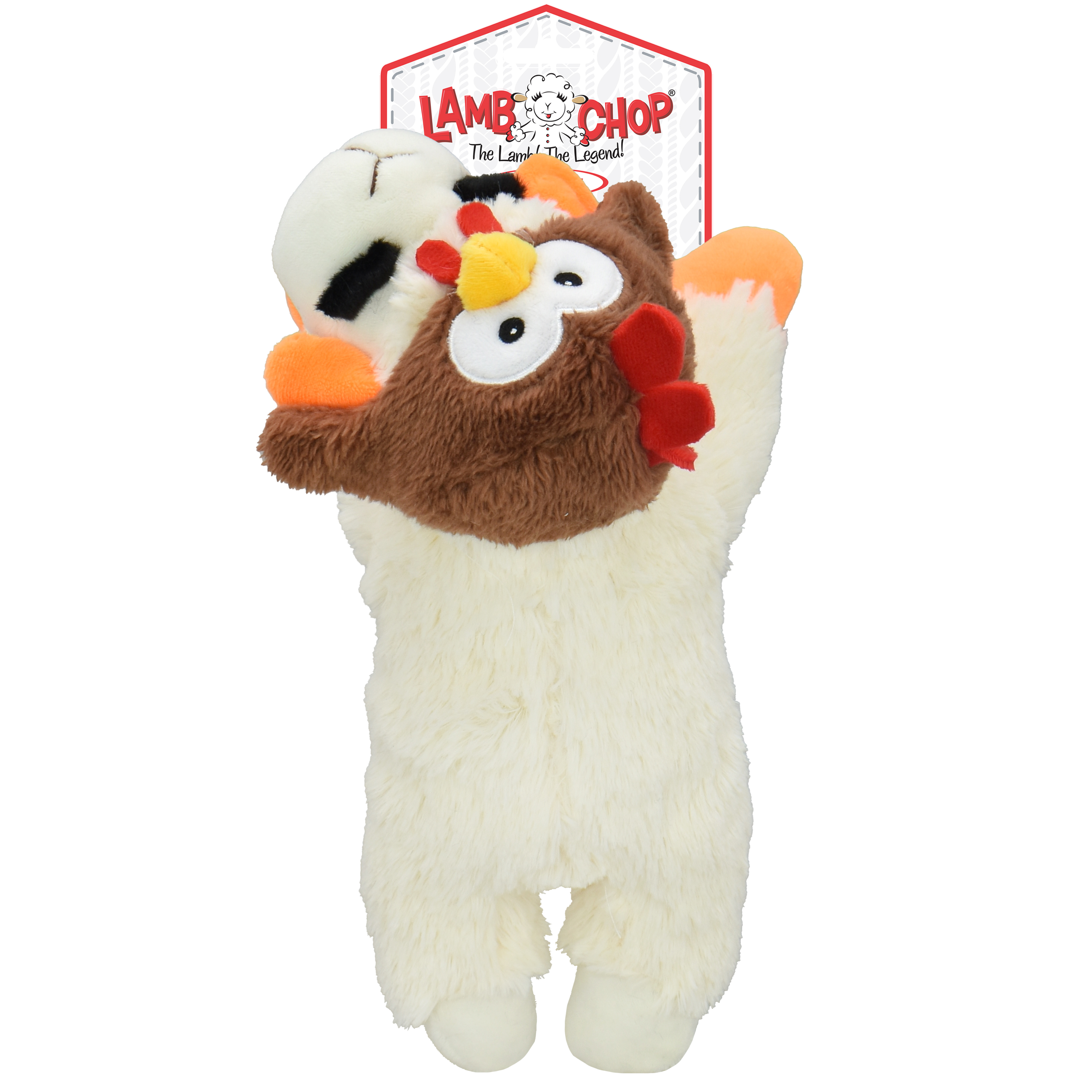 Shari Lewis' beloved and classic lamb is now available as a pet toy. This 10.5-inch Lamb Chop dog toy is ready for Thanksgiving with a Turkey Hat! Lamb Chop has an ultra soft exterior that is perfect for cuddles. Includes a squeaker for playtime fun.Specifications