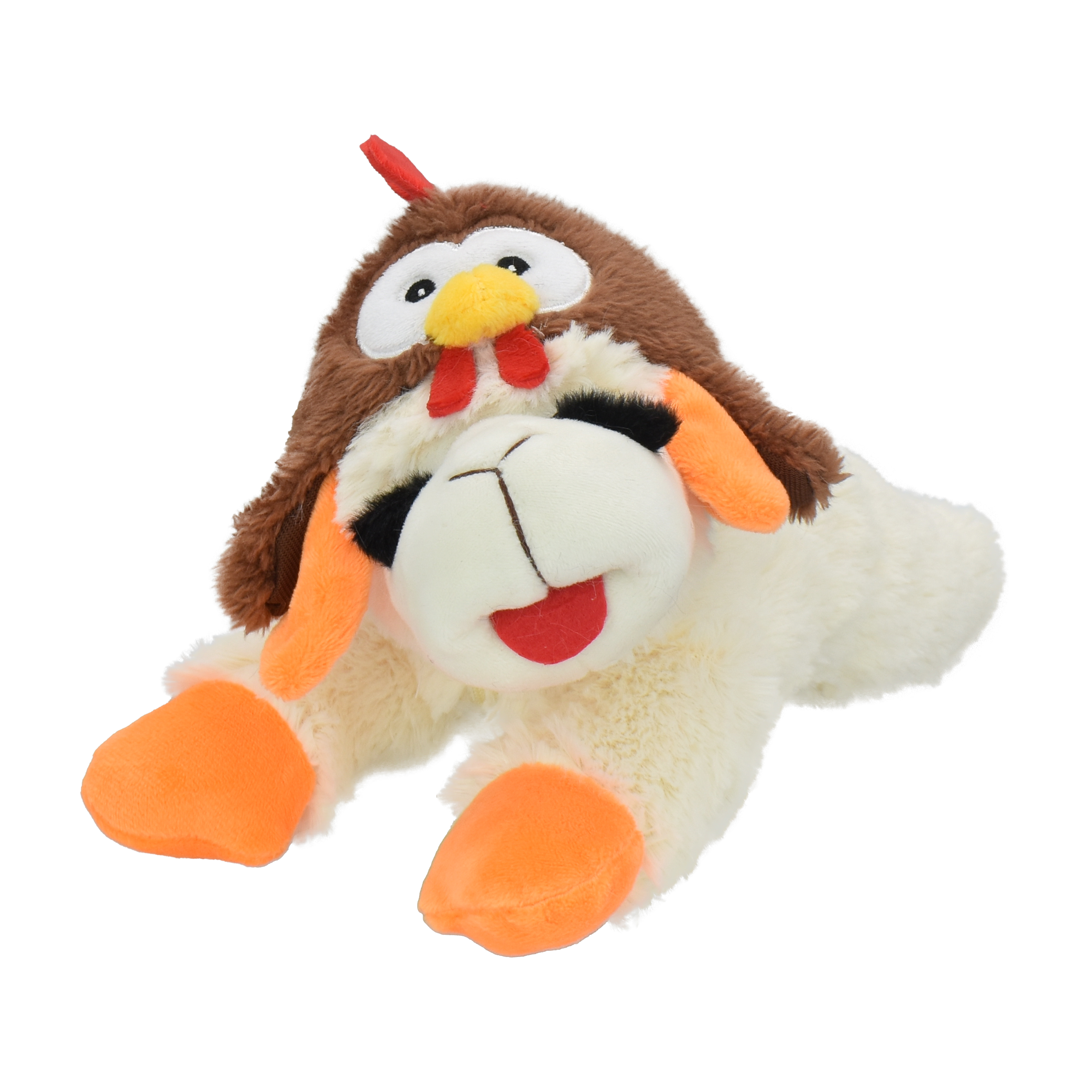 Includes a squeaker for playtime fun; This 10.5-inch Lamb Chop dog toy is ready for Thanksgiving with a Turkey Hat; Ultra soft exterior is perfect for cuddles