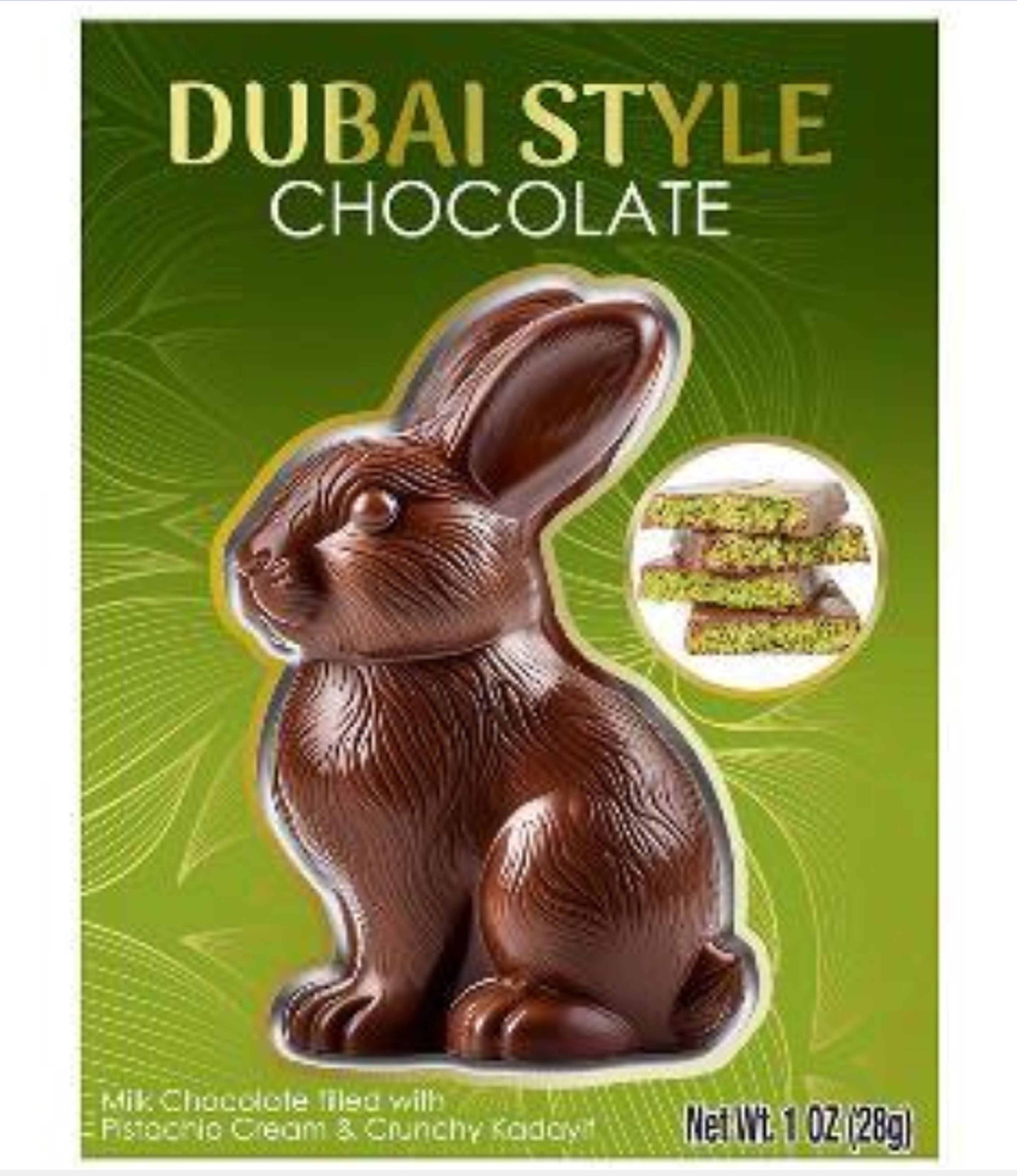 1 OZ; DUBAI STYLE; PISTACHIO MILK CHOCOLATE; SHAPED LIKE A BUNNY