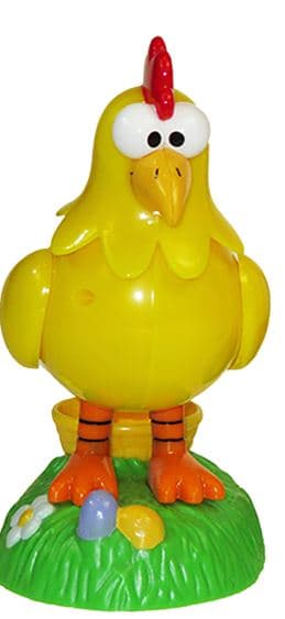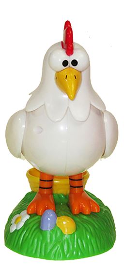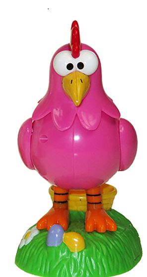 (WE CANNOT GUARANTEE A SPECIFIC COLOR OR STYLE) MY FAVORITE KOO KOO CLUCKIN CHICKEN DISPENSER MAKES NOISE DISPENSES JELLY BEANS AND IS REFILLABLE WITH SMALL JELLY BEANS. THIS IS THE PERFECT ADDITION TO YOUR EASTER BASKETS THIS YEAR.Specifications