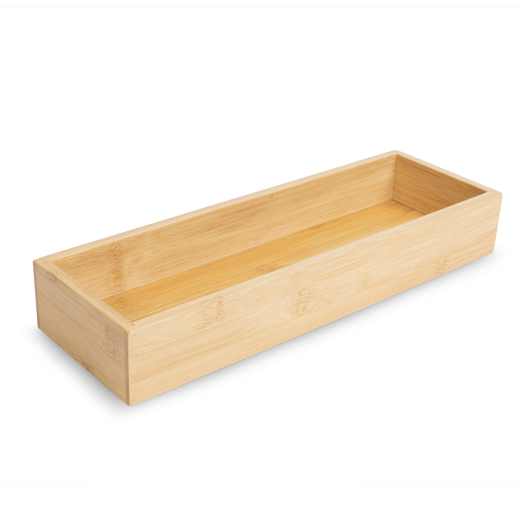 Organize your drawers with durable bamboo for long lasting organization. This versatile tray allows you to mix and match with other sizes, creating a personalized solution tailored to your storage needs.Package Includes Bamboo Drawer TrayFits most standard-size drawers; measure shelf dimensions for proper fit. Ideal for organizing in the kitchen, bedroom, bathroom, and more.Features and Benefits Our Bamboo Drawer Tray is crafted from durable and eco-friendly bamboo for long-lasting organization. This versatile tray lets you mix and match sizes for a personalized storage solution. Ideal for the kitchen, bathroom, or office, it keeps your space tidy and stylish.Product Specifications Dimensions: 4.25 (W) x 13 (D) x 2 (H) inches Design: Bamboo Drawer TrayColor: Natural Material: BambooSpecifications