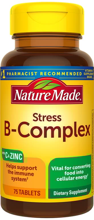 Provides 8 essential B vitamins, which help convert food into cellular energy, along with vitamins C, E and zinc which help support the immune system. B vitamins are also important for the normal functioning of the nervous system, and vitamins C and E provide antioxidant support. So don't stress out. We got you. Vitamins C & E are antioxidants and essential nutrientsVitamin C helps support the immune systemZinc helps support a healthy immune system and is also vital for normal growth and developmentNature Made Stress B-Complex with Vitamin C and Zinc is a combination of 8 essential B vitamins (thiamin, riboflavin, niacin, B6, folic acid, B12, biotin and pantothenic acid) that help convert the food you eat into cellular energy. B vitamins are also necessary for normal functioning of the nervous system. Our Stress B-Complex formula also contains vitamin C and vitamin E for antioxidant support, and zinc to help support the immune system. It's the perfect combination to help support the energy within.No Artificial FlavorsNo Color AddedGluten FreeSpecifications