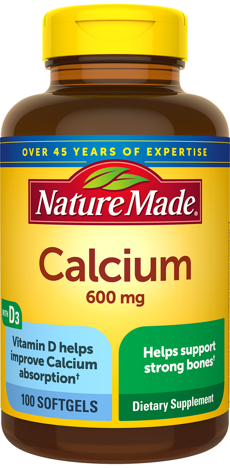 Calcium 600 mg with Vitamin D 100 Softgels from Nature Made is a supplement that improves your intake of calcium. This formula contains calcium and vitamin D3. Calcium in this supplement from Nature Made is present in the form of calcium carbonate. Studies reveal that many people may have a deficiency of calcium especially post-menopausal women. A shortfall of calcium could lead to removal of stored calcium from bones into the blood thereby leaving the bones brittle and weak. Presence of vitamin D3 in this supplement enhances the absorption of calcium by the body. Calcium in the blood aids in the transport of nutrients through cell membranes. It could also produce hormones and enzymes that modulate metabolism. Studies show that calcium may help transmit impulses between nerve cells support muscle contractions and blood clotting. Switch to Calcium 600 mg with Vitamin D 100 Softgels from Nature Made and boost the health of your bones teeth and metabolism. These statements have not been evaluated by the Food and Drug Administration (FDA). These products are not meant to diagnose treat or cure any disease or medical condition. Please consult your doctor before starting any exercise or nutritional supplement program or before using these or any product during pregnancy or if you have a serious medical condition.Specifications