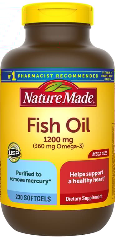 Contains a 115-day supply of Nature Made Fish Oil 1200 mg softgels 230 softgels per bottle; Every 2 softgels provide 720 mg of heart-healthy; Gluten Free; No Artificial Flavors; No Color Added; Omega-3 600 mg EPA / DHA; Purified to remove mercury
