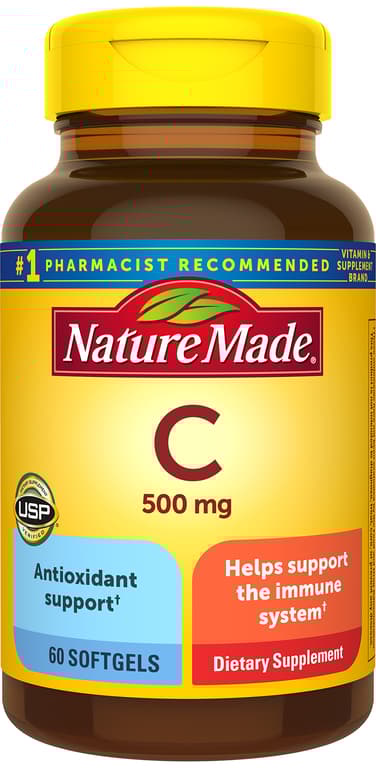 Adults take 1 softgel daily with water and a meal; Contains a 60-day supply of Nature Made Vitamin C 500 mg Softgels 60 softgels per bottle; Guaranteed to meet our high quality standards. Made from carefully selected ingredients under strict manufacturing processes. No synthetic dyes no artificial flavors no added preservatives gluten free; Helps support the immune system. Antioxidant support