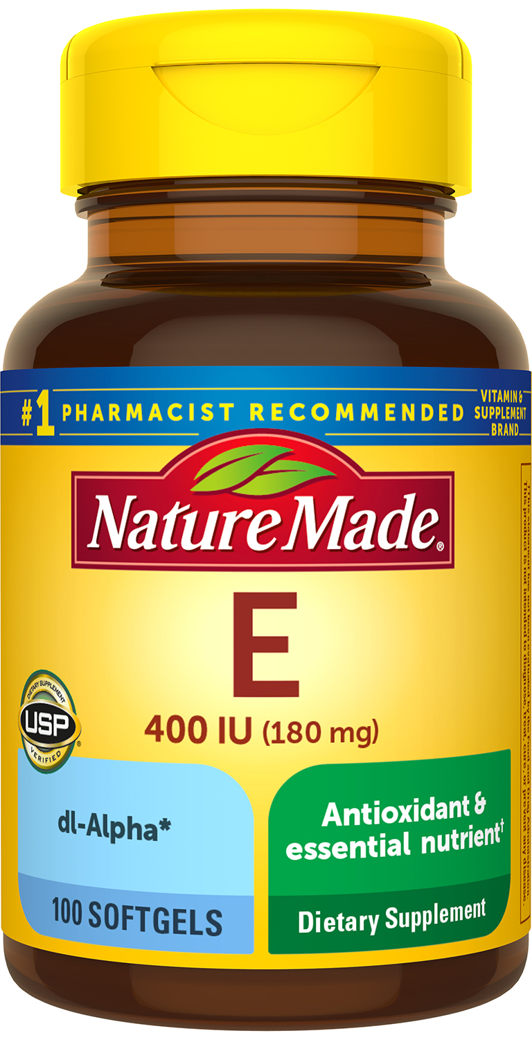 Vitamin E 400 IU 100 Softgels from Nature Made is a supplement that may have antioxidant properties and ward off free radicals. In addition it might also support a heart healthy living. Vitamin E present in this supplement from Nature Made is a generic term for a family of compounds called tocopherols and tocotrienols each occurring in alpha beta gamma and delta forms. A fat soluble vitamin vitamin E appears in the liver and fat tissue. Vitamin E could safeguard the integrity of cell membranes. It may have antioxidant potential thereby scavenging or destroying free radicals molecules that may damage the DNA inside cells. Studies show that vitamin E may support the cardiovascular system by reducing the effects of low density lipoproteins. It could also have anti-inflammatory properties that could protect the heart. Vitamin E may boost immunity and support cognition and delay changes of aging. Switch to Vitamin E 400 IU 100 Softgels from Nature Made that could help the body fight free radicals and improve your cardiovascular system. These statements have not been evaluated by the Food and Drug Administration (FDA). These products are not meant to diagnose treat or cure any disease or medical condition. Please consult your doctor before starting any exercise or nutritional supplement program or before using these or any product during pregnancy or if you have a serious medical condition.Specifications