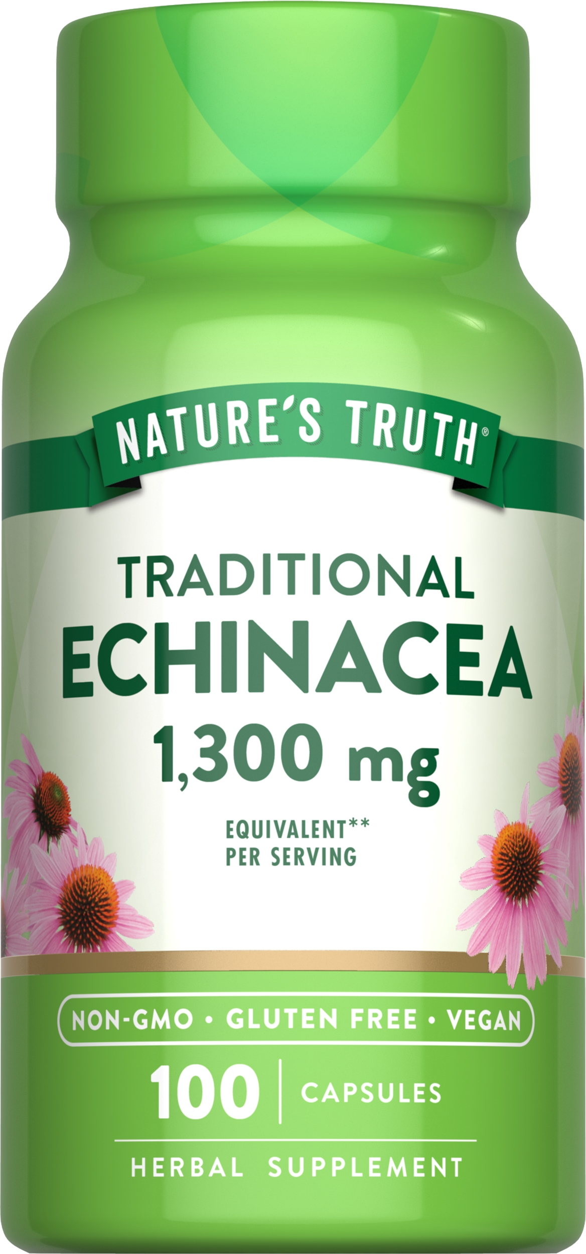 As the seasons change, so should your wellness routine! Native to North America, Echinacea is a pink flowering herb that has been used in holistic wellness practices for centuries. At Nature’s Truth, our superior formula provides you with 1300 mg of beneficial Echinacea per serving, making it easier than ever to add this traditional herb to your daily wellness routine.We know how important a clean wellness experience is for you and your family. That is why we use only the best ingredients when it comes to crafting our Echinacea. Our quick release vegetarian capsules are Non-GMO, gluten free, dairy free, and created without any artificial colors, artificial flavors, artificial sweeteners, or preservatives.Specifications