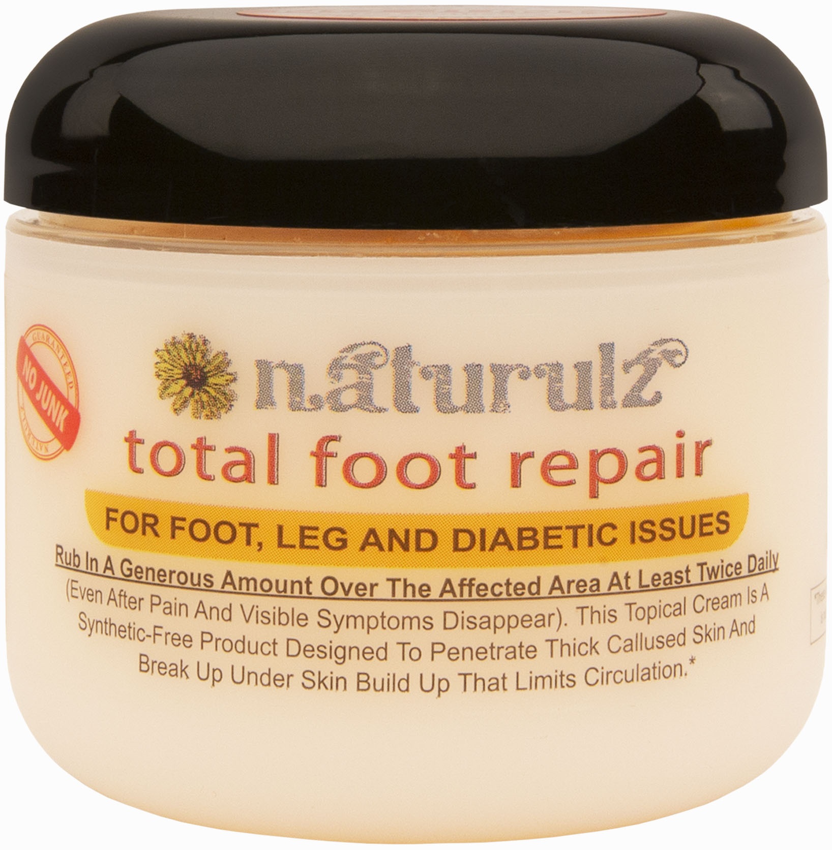 Best and most common sense approach to living with pain free legs and feet; Naturulz Total Foot Repair Cream aids in penetrating the thickest skin to provide topical nourishment; Naturulz Total Foot Repair Cream helps skin and circulation issues and may be used anywhere on the body; Nutrition rather than pharmaceuticals