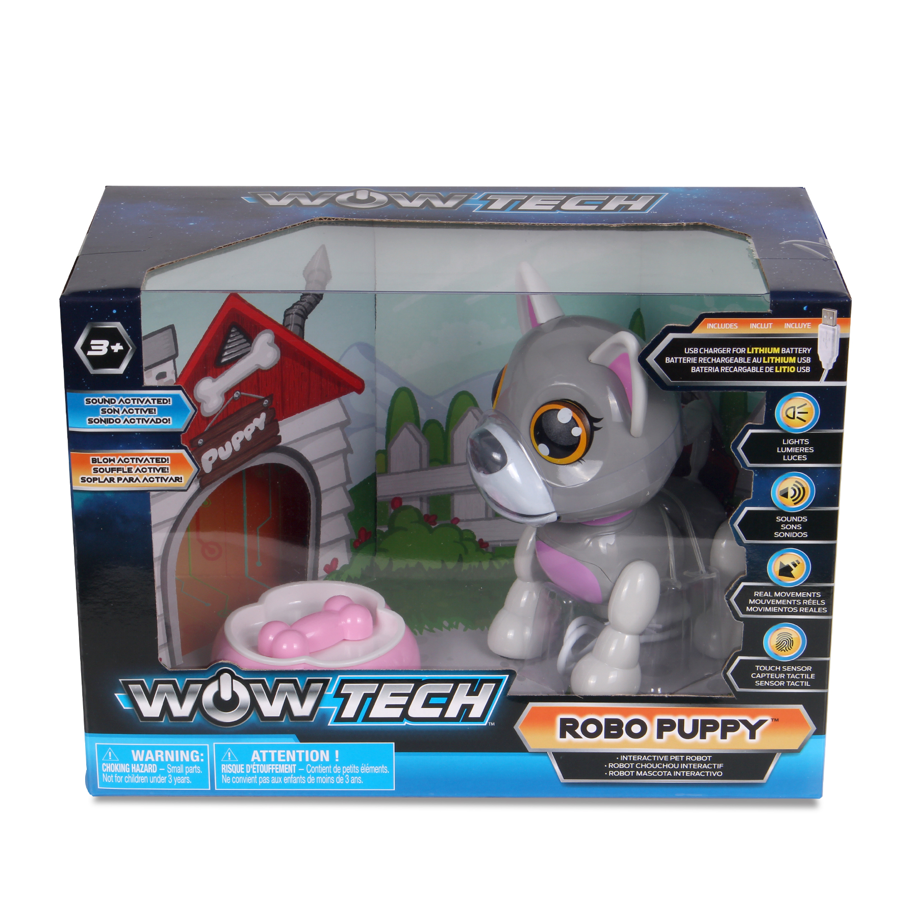 WowTech B/O USB Pet Botz robo. The PETBOTZ are adorable and rechargeable miniature robo-pets! This Robo pet is sound activated AND blow activated! That means it will make cute noises and movements on command with noise or breath. The eyes light up and it comes with a charging cable.Specifications