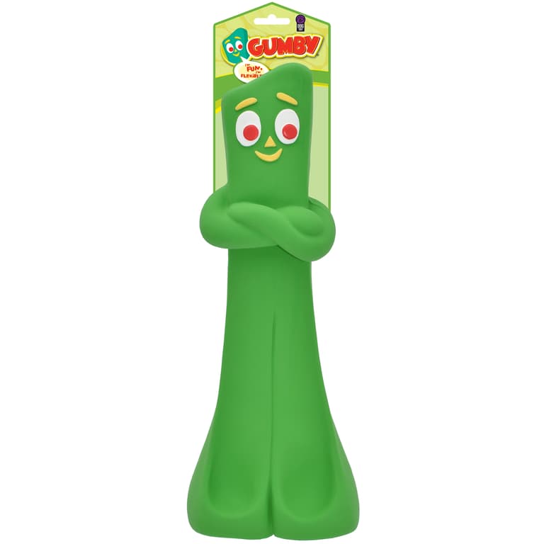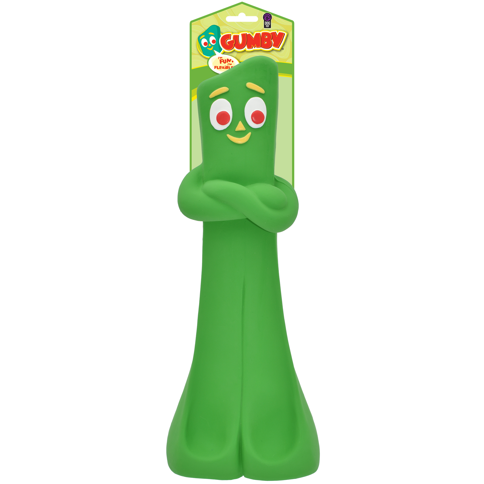 Nostalgic for you and big, green fun for your pooch, Gumby will be a favorite dog toy! Perfect for a game of fetch, or launching high in the air,this 11-inch rubber Gumby brings instant fun!Specifications