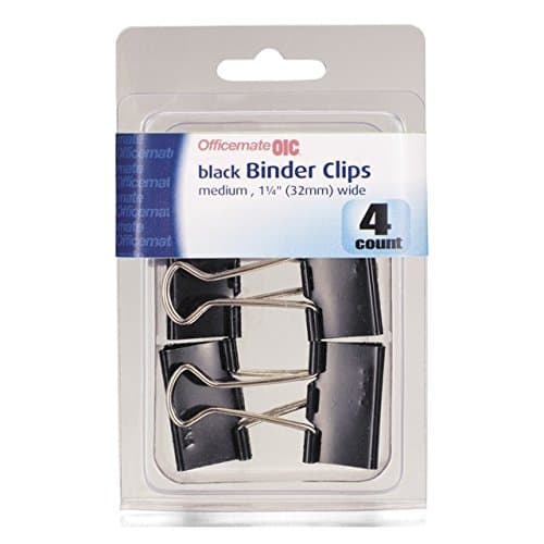 Superior holding power keep files organized and secure. Handle can be remain upright for handling and hanging folded flat for storage or can be removed for permanent binding. Ideal for temporary binding or fold flat for everyday use. Each clip is made with a corrosion-resistant coating. Medium binder clips 1-1/4 Inch wide 5/8 Inch capacity black.Specifications