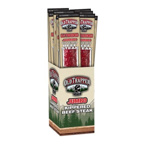 Old Trapper's Kippered Beef is made for the steak-lover. Thick strips of lean beef are seasoned with our unique blend of spices and brown sugar, then smoked with real wood. It's meat so good, you'll want to eat it with a side of potatoes.Specifications