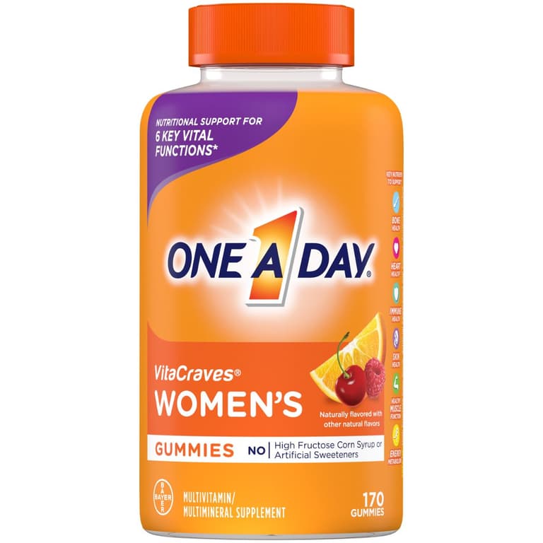 One A Day Women's VitaCraves Gummies offer a wide variety of key nutrients in a easy to chew gummy form. This daily multivitamin is specially formulated for women and contains Vitamins A, B12, B6, C, D, E, Folic Acid, Biotin, Iodine, Zinc, and Calcium. Vitamins and minerals are essential nutrients that play a critical role in overall good health. One A Day Women's VitaCraves are formulated to support bone health, immune health, and skin health. One A Day Women's VitaCraves have key nutrients to support healthy hair, skin, and nails.Specifications