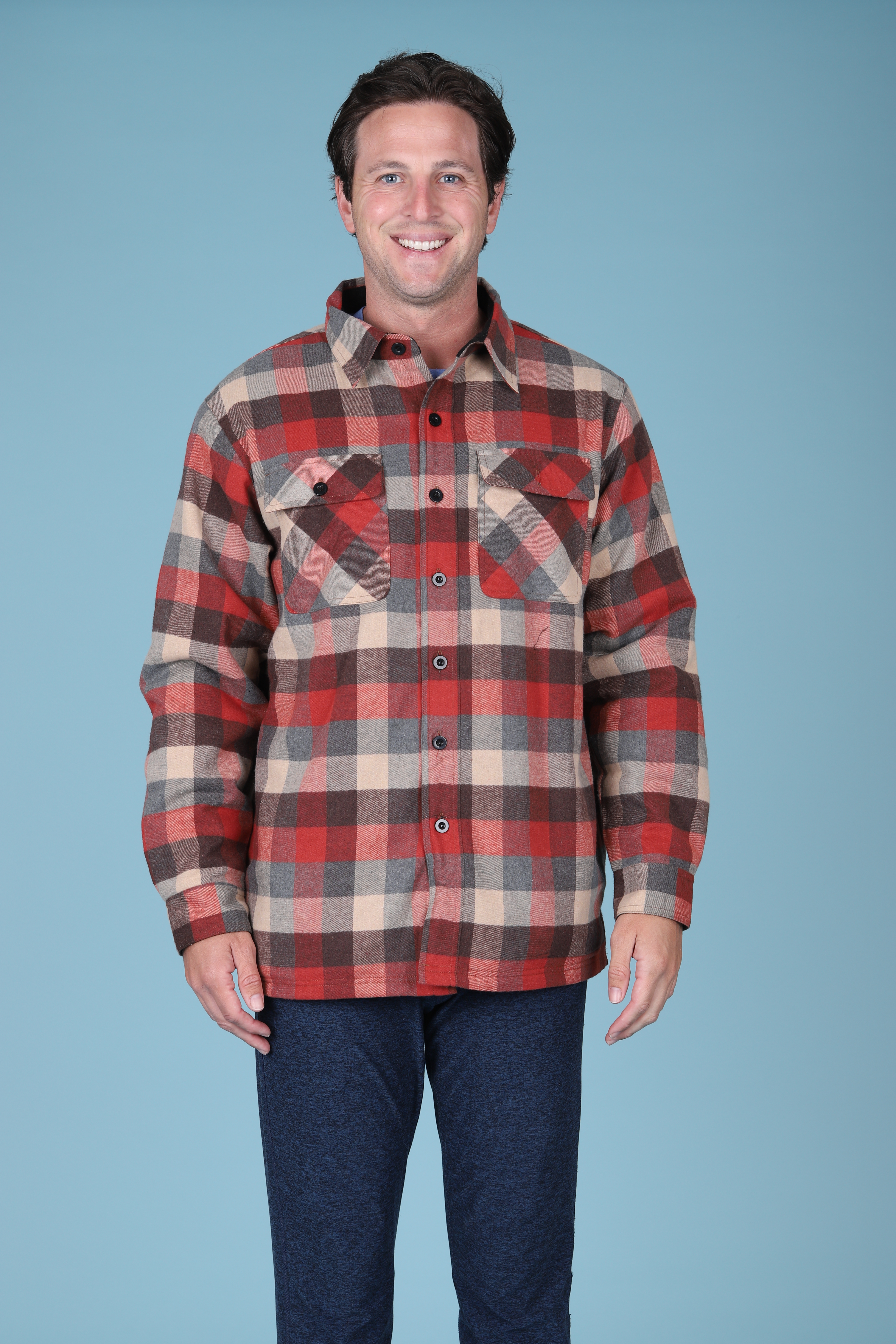 Men's 55% Cotton 45% Polyester Button Down Plaid Shirt Jacket With Matching Color Fleece Lining. 2 Chest Pockets & 2 Seam Hand Pockets. Available Colors: #231 Apple Cinnamon and #238 Red/Black. Sizes: M-3XL. Machine Wash & Dry. Imported.Specifications