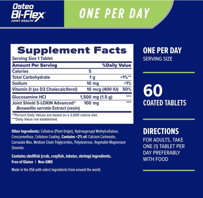 Glucosamine Joint Health Supplement with Vitamin D; Includes glucosamine chondroitin; Includes Vitamin D; Joint Shield 5-LOXIN Advanced; Osteo Bi-Flex is the Number 1 pharmacist recommended joint care supplement brand