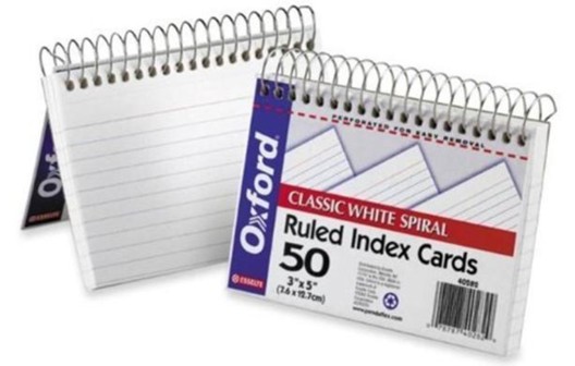 3 in x 5 in; 50 per pack; Index Cards; Lined on one side; Perforated edge; Spiral bound design