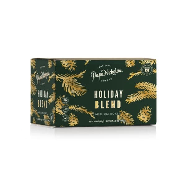 Make your mornings merry and bright with PapaNicholas Holiday Single-Serve Coffee Pods. These festive flavors are ready at the push of a button. Perfect for busy mornings, holiday gatherings, or when you just want to treat yourself, this collection brings seasonal joy to your cup in seconds. Enjoy the classic holiday favorites in convenient single-serve pods: Holiday Blend - smooth, balanced, and perfect for every occasion. PapaNicholas crafts each blend with care, selecting premium beans and roasting them to bring out their best flavors. Every coffee pod is sealed for freshness, so you can enjoy barista-quality taste and aroma whenever you want it. Whether you're entertaining guests, giving the perfect stocking stuffer, or simply taking a break from the holiday rush, PapaNicholas Holiday coffee pods are a delicious way to celebrate the season.Specifications