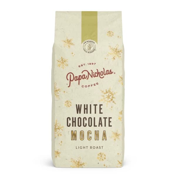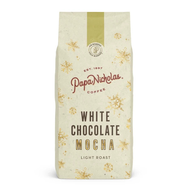 Celebrate the magic of the holidays with PapaNicholas Holiday Coffee. Crafted to warm your home with festive flavors and rich aromas. This collection of 12oz ground coffee bags is perfect for sharing, gifting, or simply enjoying cozy moments by the fire.Each bag delivers a unique seasonal experience: White Chocolate Mocha - decadent sweetness with a creamy chocolate finish. PapaNicholas carefully roasts every batch to perfection, bringing out the bold flavor and enticing aroma of the world’s finest coffee beans. Whether you’re entertaining friends, enjoying a quiet morning, or looking for the perfect gift, this holiday assortment has something for everyone. Brew a pot, fill your home with the inviting aroma, and savor the spirit of the season with every cup. With PapaNicholas Holiday Coffee, every sip feels like a celebration.Specifications