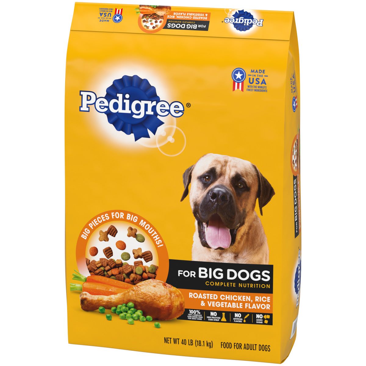 PEDIGREE For Big Dogs Roasted Chicken, Rice & Vegetable Dry Dog Food is formulated to give large dogs all of the energy and nourishment they need to continue living life to the fullest. Our chicken-flavor dog food features naturally sourced glucosamine and chondroitin to support healthy bones and joints.Specifications