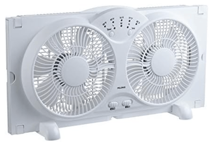This 9-inch twin window fan is the most practical way to get cool air in your house on a hot day. It features independent motor control for air intake, exhaust, and exchange. It provides a high volume of air movement, and fits windows 24 to 31 inches wide. The fan comes with an adjustable thermostat, three speeds, and feet, so it can be used as a table fan. Additionally, window installation doesn't require any tools, making setup a breeze.Specifications